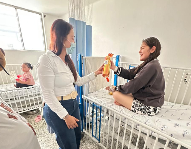 Ese día, entregamos 200 regalos y 200 refrigerios a niños y niñas hospitalizados que enfrentan con valentía cada batalla por su salud, así como a sus acompañantes, quienes también necesitan fuerza y consuelo.